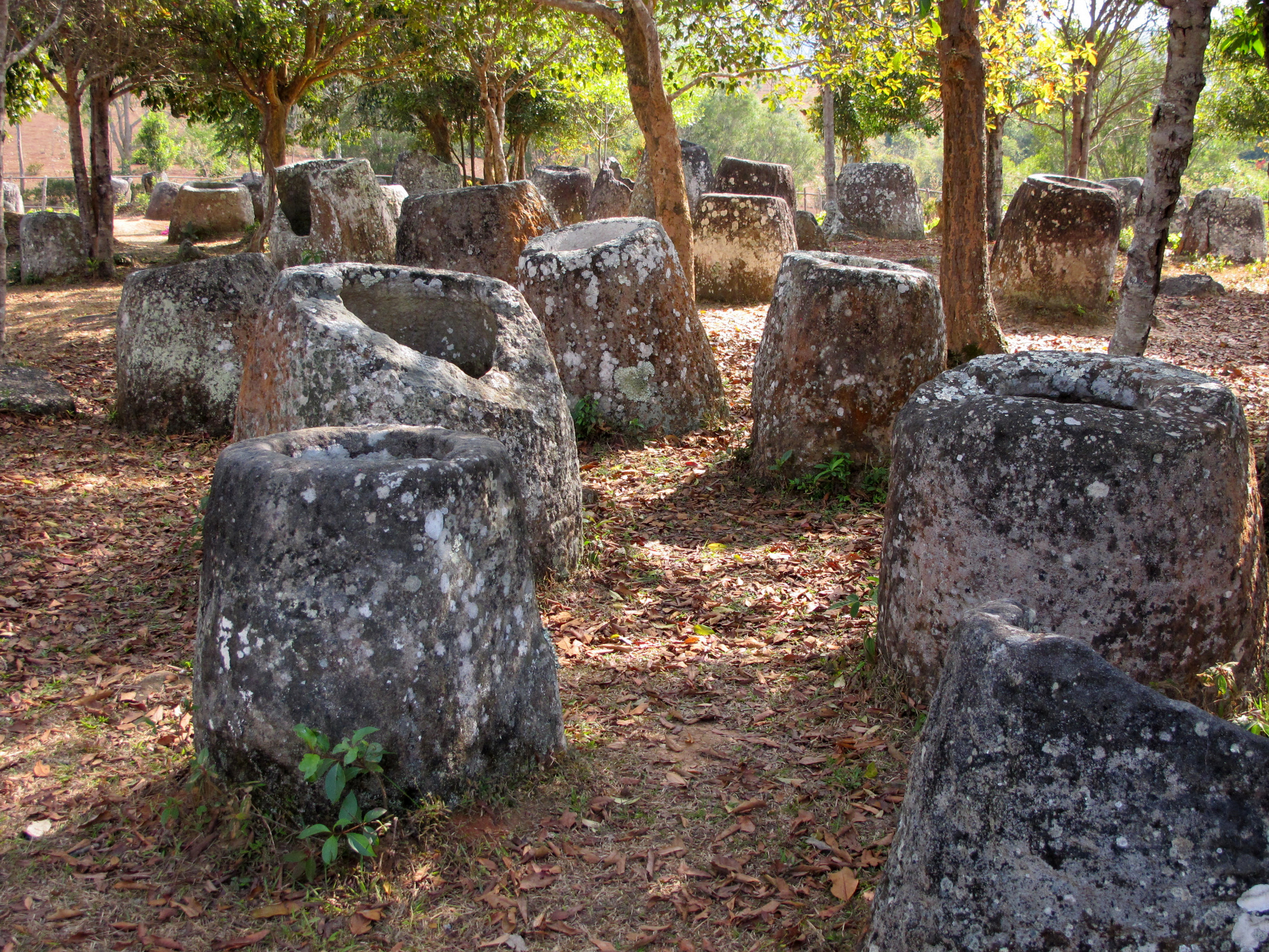 The Plain of Jars, located on a plateau in central Laos, gets its name from more than 2,100 tubular-shaped megalithic stone jars used for funerary practices in the Iron Age. This serial property of 15 components contains large carved stone jars, stone discs, secondary burials, tombstones, quarries and funerary objects dating from 500 BCE to 500 CE. The jars and associated elements are the most prominent evidence of the Iron Age civilization that made and used them until it disappeared, around 500 CE.