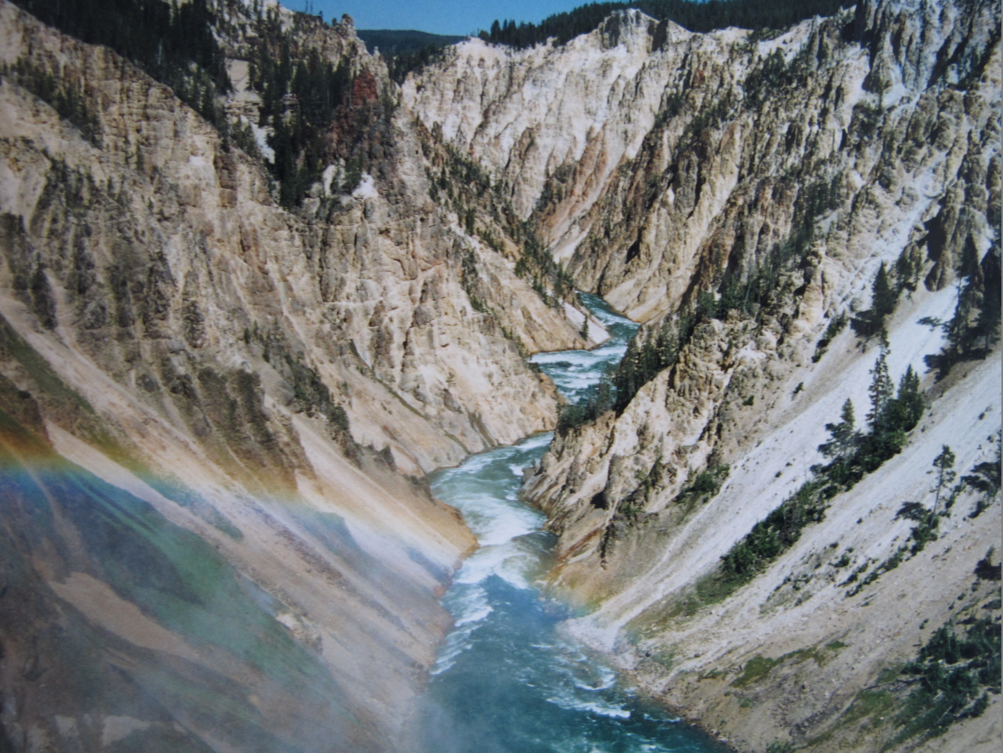 The vast natural forest of Yellowstone National Park covers nearly 9,000 km2 ; 96% of the park lies in Wyoming, 3% in Montana and 1% in Idaho. Yellowstone contains half of all the world's known geothermal features, with more than 10,000 examples. It also has the world's largest concentration of geysers (more than 300 geyers, or two thirds of all those on the planet). Established in 1872, Yellowstone is equally known for its wildlife, such as grizzly bears, wolves, bison and wapitis.