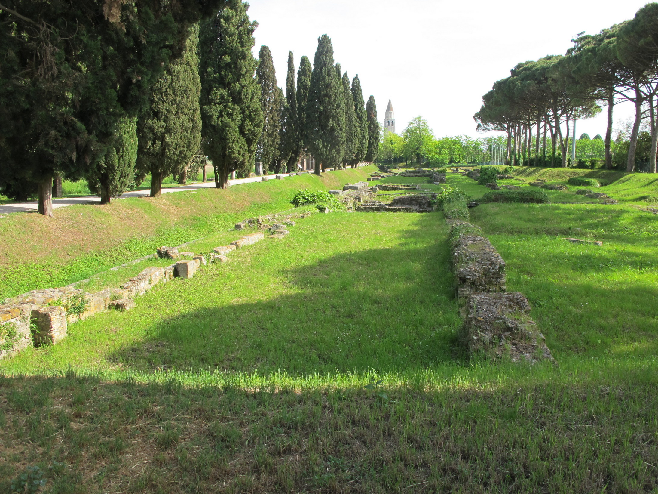 Aquileia (in Friuli-Venezia Giulia), one of the largest and wealthiest cities of the Early Roman Empire, was destroyed by Attila in the mid-5th century. Most of it still lies unexcavated beneath the fields, and as such it constitutes the greatest archaeological reserve of its kind. The patriarchal basilica, an outstanding building with an exceptional mosaic pavement, played a key role in the evangelization of a large region of central Europe.