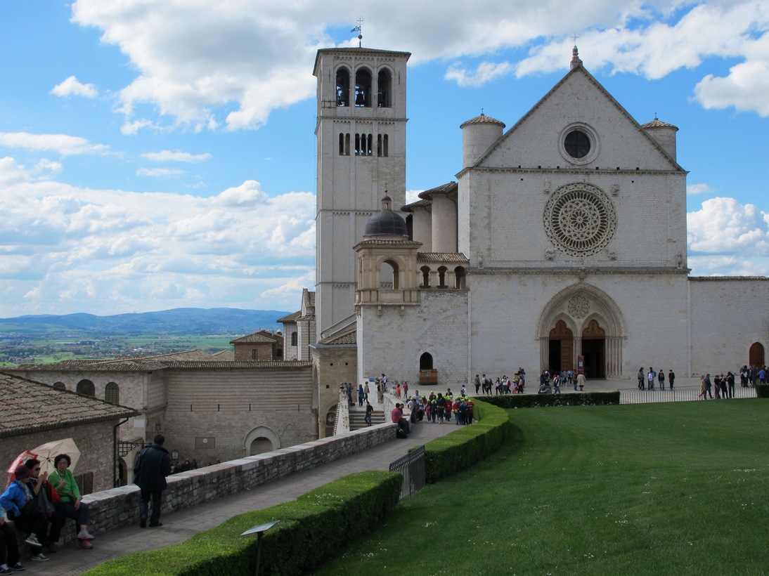 Assisi, a medieval city built on a hill, is the birthplace of Saint Francis, closely associated with the work of the Franciscan Order. Its medieval art masterpieces, such as the Basilica of San Francesco and paintings by Cimabue, Pietro Lorenzetti, Simone Martini and Giotto, have made Assisi a fundamental reference point for the development of Italian and European art and architecture.